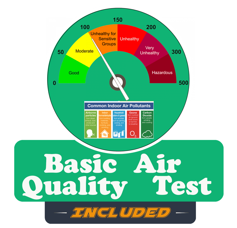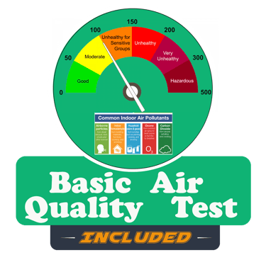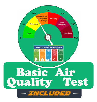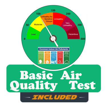 NOTE: a proper full AIR QUALITY Assessment would take days and would be more detailed. The air quality testing that is included will start the conversation on if there is a recommended need to follow up with a full Air Quality Assessment.