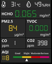 Detecting HCHO, PM2.5, TVOC, CO, CO2, AQI,