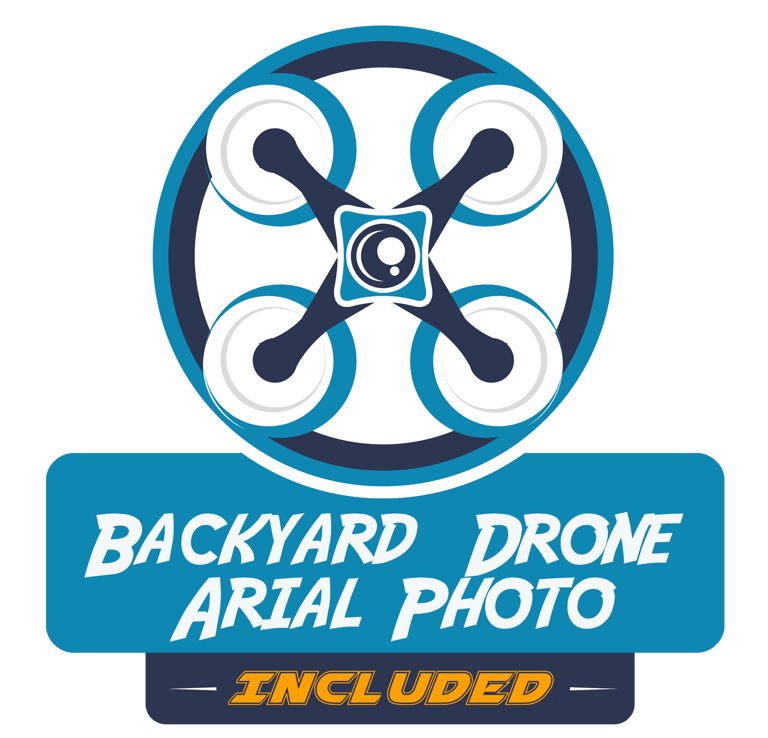 We will take an arial photo of your back yard - showing fence line to fence line to fence line to house.
